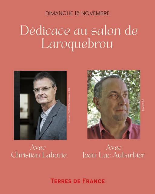 Le dimanche 16 novembre 2025, de 10h à 17h, je participerai au salon du livre de Laroquebrou, près d’Aurillac, dans le Cantal, en compagnie de Jean-Paul Malaval, Christian Laborie, etc. J’y présenterai l’ensemble de mes romans, en particuliers « L’évangile de Septimanie » (City éditions) et « Le Fils du cabaretier » (Presses de la Cité). L’intendance sera assuée par la librairie Point Virgule, à Aurillac.