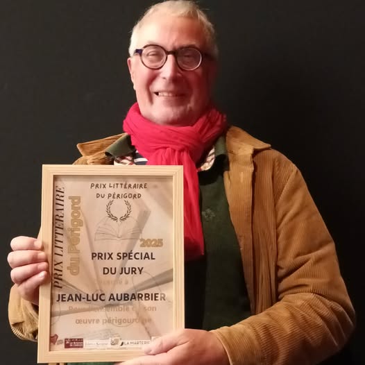 Le samedi 25 octobre, au cinéma du Buisson, j’ai eu le grand honneur de recevoir le prix littéraire du Périgord 2025 pour l’ensemble de mon œuvre. Cela sent un peu le vieil écrivain en bout de course, mais j’accepte avec plaisir ce « prix Nobel du Périgord » que même Jean-Paul Sartre (célèbre écrivain périgourdin) n’a pas eu le loisir de refuser. Je succède dans ce titre à Christian Signol, réceptionnaire du prix en 2024. Merci aux membres du jury, à l’académie des Arts et Lettres du Périgord, à mes éditeurs et à mes lectrices et lecteurs. « J’écrirai tant qu’il y aura d’encre et de papier au monde » (Montaigne).